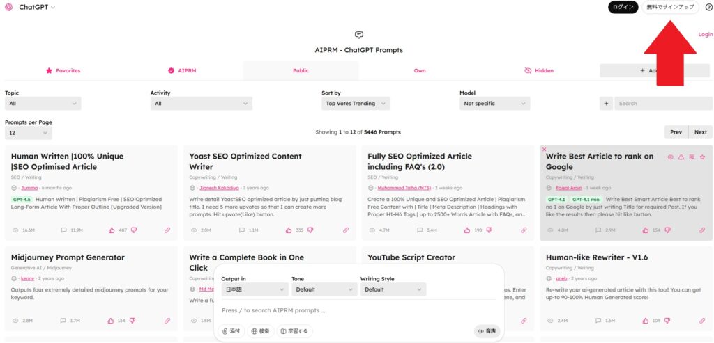 - 「Sign up」(サインアップ:登録という意味)または「登録」ボタンをクリック。