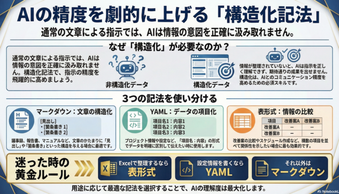 AIは「新人アルバイトさん」だと思ってください。「あれやって」だけだと伝わりません。